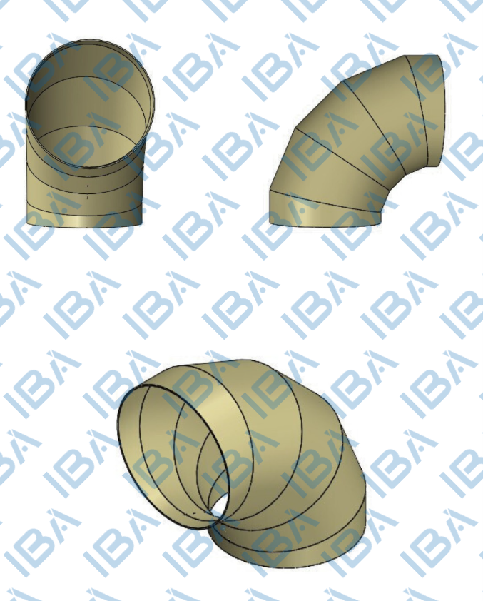 As curvas com ângulo de 90° são úteis para mudar a direção do fluxo de ar, sendo empregadas principalmente em instalações onde o espaço é limitado. São fabricadas em diversos materiais e diâmetros, de acordo com as necessidades do projeto.