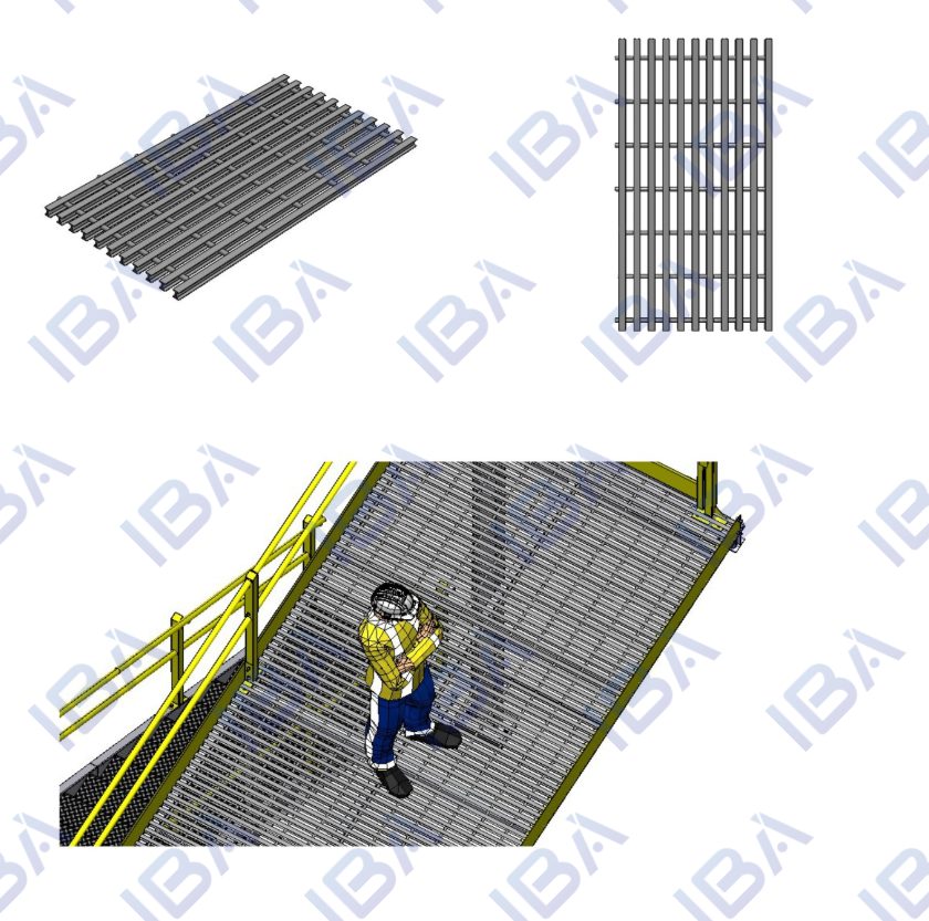 Estrado pultrudado utilizado como passadiço nas passarelas de operação e manutenção. Fabricado em resina poliéster, proporciona alta resistência e durabilidade, e possui superfície antiderrapante